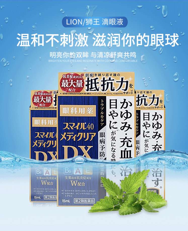 藥品通用名:LION/獅王 幹癢充血滴眼液DX眼藥水消炎15ml藥品名稱:LION/獅王日本進口乾癢充血滴眼液DX眼藥水消炎15ml適應症:眼睛發癢、結膜充血、視力模糊(眼眵多時)、預防眼病(游泳後、灰塵或汗水進入眼睛等)、眼睛疲勞、瞼緣炎