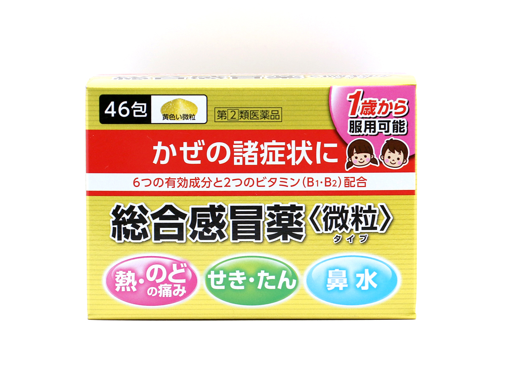 本剤は、「かぜ」に対応して、発熱、頭痛、せき、鼻水、のどの痛み、体の節々の痛みの症状を抑える各種成分と共に、消耗を防ぐビタミンB1・B2等、8種の有効成分を配合した総合かぜ薬です。1歳から服用可能な風邪薬です。